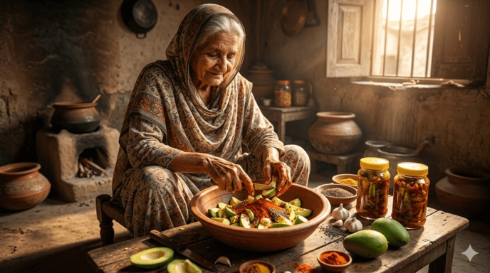 Every jar of Achari Zaiqa begins with the same ritual that Nani Ammi performed every summer in Shikarpur — selecting the ripest mangoes at dawn, cracking the mustard seeds by hand, and trusting instinct over measurements.